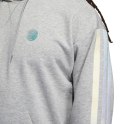 Męska bluza adidas to definicja sportowego minimalizmu, który oferuje nieprzerwaną wygodę i uniwersalność. Konstrukcja wykonana z tkaniny z wysoką zawartością bawełny dba o wentylację ciała i nie powoduje podrażnień. Dodatek poliestrowych włókien zwiększa trwałość. Klasyczny krój nie krępuje ruchów. Zintegrowany kaptur regulowany sznurkiem osłoni głowę przed niekorzystnymi warunkami atmosferycznymi. Elastyczne wykończenie mankietów i dołu bluzy. Kieszeń typu kangurka na drobiazgi. Model w kolorze szarym z białymi paskami na rękawach i logo Donovana Mitchella na froncie.