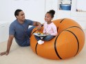 Dmuchany fotel piłka do kosza Beanless™ firmy Bestway® świetnie sprawdzi się jako designerski element wyposażenia pokoju dziecka lub jako modny młodzieżowy mebel ogrodowy. Ten wygodny puf ze względu na swoją ciekawą formę oraz grafikę szczególnie spodoba się wszystkim fanom koszykówki. Fotel świetnie sprawdzi się podczas spotkań ze znajomymi na plaży, podwórku lub pokoju dziecięcym zapewniając relaks oraz dodatkowe miejsce do siedzenia podczas imprez. Dmuchany fotel jest miękki i wygodny więc oglądanie meczów lub bajek, granie w gry, czytanie, nauka lub wypoczynek w ogrodzie w takim fotelu to prawdziwa przyjemność. Dzięki gładkiej powierzchni jest łatwy do wyczyszczenia. Produkt jest przeznaczony dla dzieci od 6 roku życia. Dzięki łatwemu napompowaniu można szybko rozłożyć siedzisko, jak też łatwo rozłożyć co ułatwia przechowywanie.