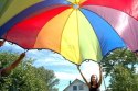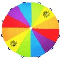 Spadochron animacyjny, podobnie jak chusta animacyjna umożliwia zabawę w każdych warunkach, integruje oraz pobudza wyobraźnię i kreatywność.
