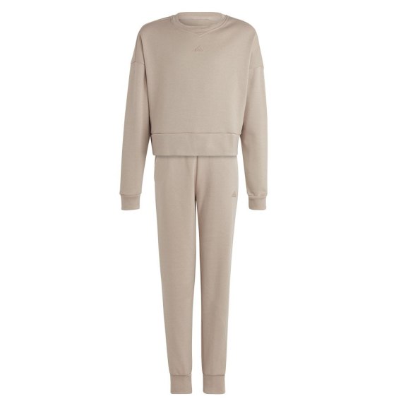 Stylowy zestaw dresowy dla dziewcząt, który tworzy ciekawą sportową stylizację na co dzień. Bluza z okrągłym dekoltem i skróconym dolnym wykończeniem zapewnia swobodne dopasowanie i więcej ciepła w jesienne poranki. Spodnie z dopasowaną nogawką pozbawione kieszeni to wygoda w sporcie i w czasie wolnym. Nogawki z elastycznym mankietem eksponują nasze ulubione sportowe buty.