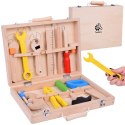 Drewniana walizka z narzędziami to idealny zestaw dla dzieci, które chcą umieć pomagać w podstawowych pracach domowych lub po prostu lubią majsterkować.