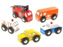 Klocki drewniane, budujemy z drewna, miasteczko drewniane, autka drewniane, straż pożarna, policja, domki drewniane