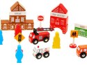 Przedstawiamy niezwykłe drewniane klocki. Zestaw składa się z 47 elementów, z których można zbudować całe miasteczko: znajdzie się tu remiza strażacka, szkoła, bank, kościół ale też pojazdy: karetka, taxi, wóz policyjny a nawet drzewa i postacie.