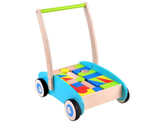 Drewniany Pchacz, chodzik, wózek z klockami ZA3724