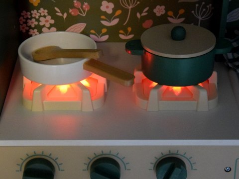 - 2 podświetlane palniki z efektami dźwiękowymi gotowania,