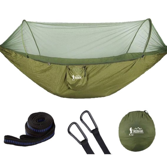 Ten klasyczny, obszerny i wygodny hamak wyposażony w specjalne pasy i karabińczyki oraz moskitierę, zawiesisz wszędzie gdzie tylko zechcesz.