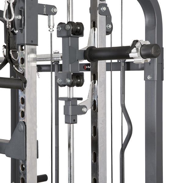 Konstrukcja naszej Suwnicy Smitha wprowadza zupełnie nowe możliwości do treningu siłowego. Dzieje się tak przede wszystkim za sprawą zespolenia mechanizmu przesuwnego z gryfem oraz systemem asekuracji. Ten model jest również wyposażony w dodatkowe elementy. Oznacza to, że decydując się na zakup CYKLOP 1 HMS, otrzymujesz urządzenie do kompleksowego treningu całego ciała. CYKLOP 1 HMS jest stabilnym urządzeniem klasy Semi Commercial. Sprzęt idealnie nadaje się do użytku komercyjnego w małych klubach fitness, siłowniach, a także w warunkach domowych. To urządzenie łączy klasyczną Suwnicę Smitha z wyciągami, dlatego twój trening będzie wykonany na 100%!