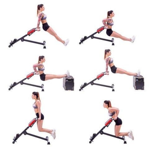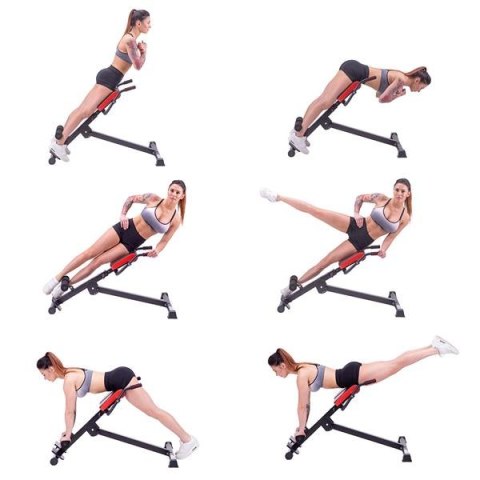 To świetne izolujące ćwiczenie gdzie nogi są zablokowane, a wykonujemy zgięcie tylko w stawie biodrowym. W trakcie opadu tułowia pośladki i mięśnie uda bardzo mocno się rozciągają, a ponieważ ich pozycja jest zablokowana, bardzo mocno napinają się by pomóc prostownikowi grzbietu unieść tułów z powrotem do początkowej pozycji. Im większy skłon tułowia tym większe zaangażowanie mięśni do pracy. Ławeczkę można wykorzystać także do ćwiczenia mięśni brzucha.