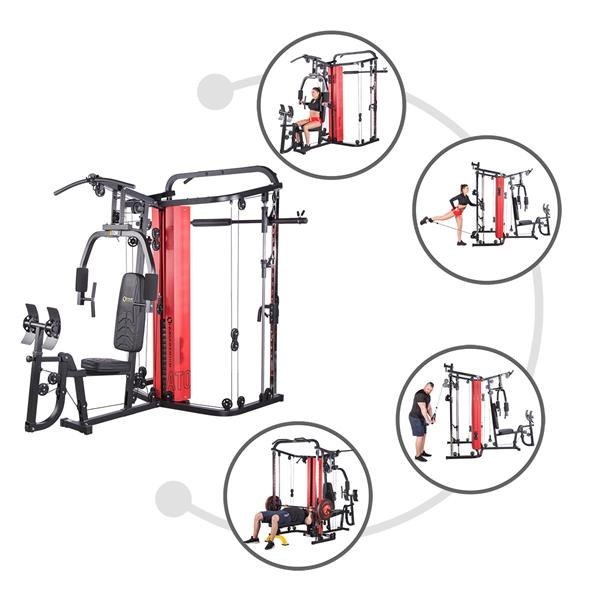 ATOM daje użytkownikowi do dyspozycji suwnicę smitha, dwa wyciągi z regulowaną wysokością, ramie wyciskowe, które łatwo przekształcić w butterflya, miejsce do wyciskania nogami, a także drążek do podciągania. Wszystkie składowe umożliwiają wykonanie ćwiczeń na każdą partię mięśniową, tworząc z ATOMA naprawdę kompleksowe urządzenie. Do produktu zostało dołączone dodatkowe wyposażenie w postaci uchwytów do wyciągu, dzięki czemu trening będzie bardziej efektywny.