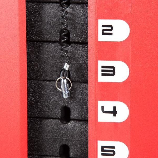 Regulacja wysokości podstawek na stanowisku do wyciskania nogami: 3 poziomy, co 3 cm