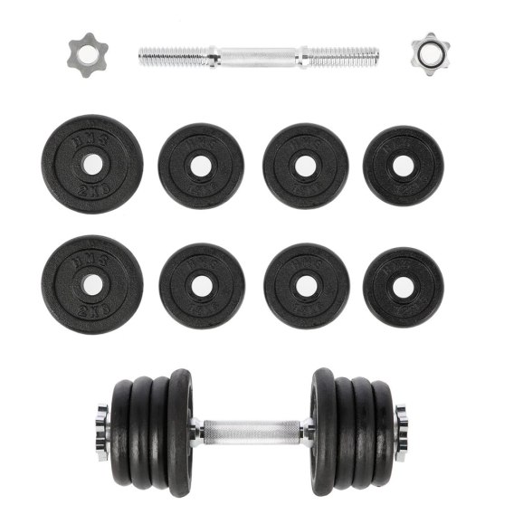SG04 HMS - hantla żeliwna, czyli klasyka, a zarazem niezbędnik każdej domowej siłowni. W skład zestawu wchodzą: gryf prosty 2 kg, 2 talerze 1,25 kg, 4 talerze 1,5 kg, 2 talerze 2 kg oraz 2 zaciski gwiazdowe 0,25 kg. Pierwszy z elementów został wykonany ze stali niklowanej. Z kolei talerze są żeliwne. Gryf posiada ryflowany uchwyt, dzięki czemu nie wyślizguję się w trakcie ćwiczeń. Gwintowane sztangielki w połączeniu z zaciskami gwarantują równomierny docisk ciężarów. Produkt jest odpowiedni zarówno dla zaawansowanych jak i początkujących użytkowników. Już dziś zacznij dbać o swoją kondycję, z profesjonalną sztangielką o obciążeniu 15 kg. To idealna propozycja zarówno do domu jak i do siłowni.