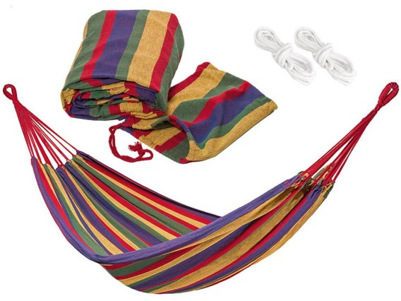 Wesoły, kolorowy wzór w pasy sprawia, że hamak wygląda ciekawie i będzie ozdobą każdego ogrodu, ale nie tylko!