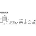 · Wymiary: 240 cm ( +160 przedsionek ) x 230 cm (szerokość) x 140 cm (wysokość w najwyższym miejscu)