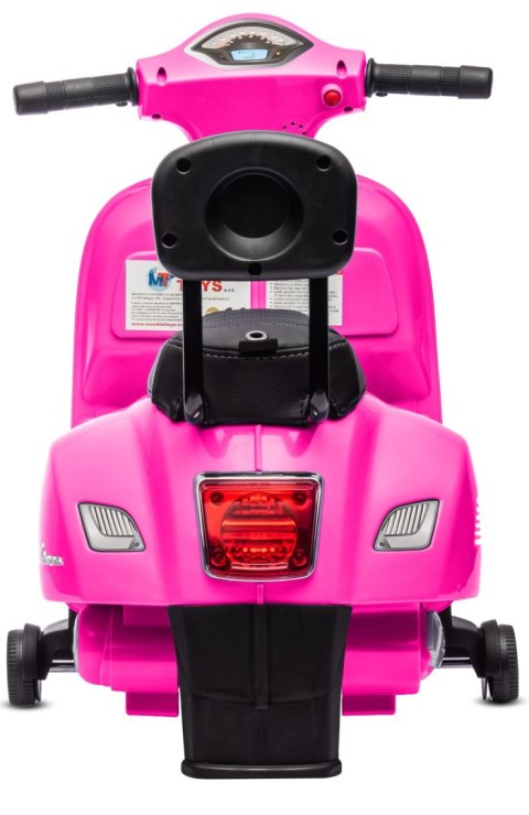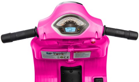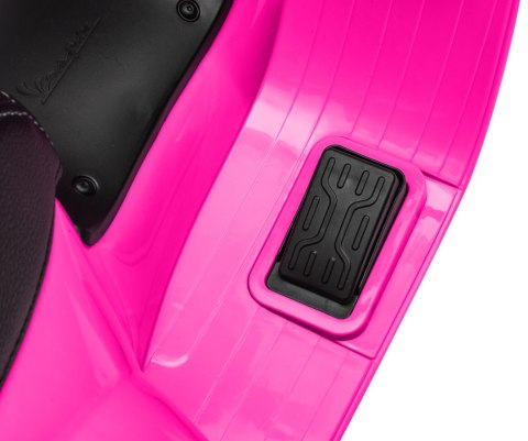 • Jeździk akumulatorowy Scooter Vespa z siedzeniem z ekoskóry z przeszyciem i oparciem fuksja