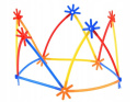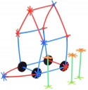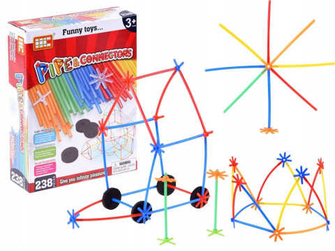 Plastikowe, elastyczne słomki, wieloramienne łączniki oraz piankowe koła pozwolą stworzyć dowolnie wybrany kształt - od prostych figur, po domy, promy kosmiczne czy pojazdy.