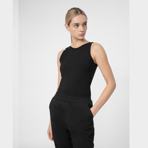 Damska koszulka typu crop top 4F to wygodna alternatywa tradycyjnych. Koszulka typu crop top na cieplejsze dni. Uszyta z gładkiej dzianiny z dodatkiem elastanu.Głęboki dekolt z tyłu eksponuje plecy. Koszulka ta gwarantuje pełną swobodę ruchów i stylowy wygląd z niemal każdym dolnym elementem garderoby. Załóż ją do dżinsów z wysokim stanem, legginsów lub lekkiej spódnicy letniej i poczuj, czym jest jakość.