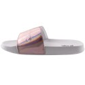 Klapki dla kobiet sprawdzą się podczas letnich dni. Profilowana wkładka. Syntetyczna cholewka podszyta miekkim materiałem tekstylnym. Podeszwa wykonana z wysokogatunkowego tworzywa zapewnia lekkość i optymalną amortyzację. Wyraźne logo.