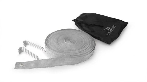 - W skład kompletu wchodzi 8 śledzi, które są wbijane w trawę lub piasek.