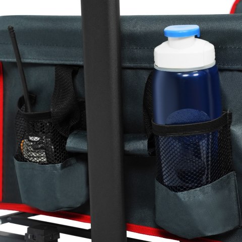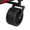 Wózek został zaprojektowany z myślą o wygodzie. Posiada regulowaną rączkę, co pozwala dostosować jej wysokość do wzrostu użytkownika, zapewniając ergonomiczną i komfortową obsługę. Duże, szerokie koła o wymiarach 7×4" wykonane z połączenia PP i PVC radzą sobie świetnie na różnych nawierzchniach - od asfaltu, przez trawę, aż po piasek.