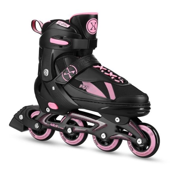 NH382 dostępne są w czterech wariantach rozmiarowych - XS, S, M i L - z możliwością regulacji długości wkładki. To sprawia, że łyżworolki mogą służyć przez dłuższy czas, dostosowując się do rosnącej stopy dziecka. Duży zakres wagowy (od 20 do 100 kg) pozwala na użytkowanie zarówno przez dzieci, młodzież, jak i dorosłych.