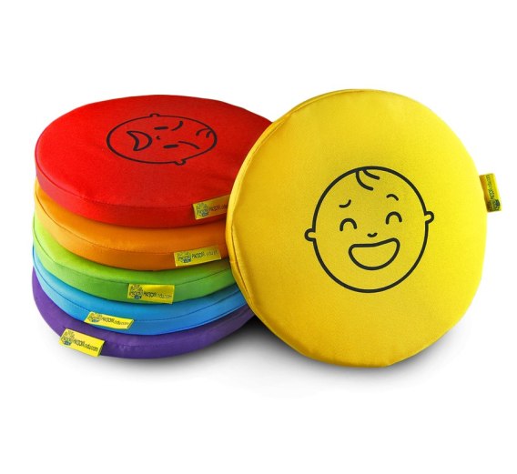 Poduszki EMOCJE zestaw 6 szt. to ważny element wyposażenia każdego animatora, przedszkola i szkoły.  Poduszki mają szerokie zastosowanie w pracy z grupą. Idealnie sprawdzą się we wszelkiego rodzaju  zajęciach edukacyjnych i integracyjnych. To doskonałe narzędzie do gier zespołowych w pomieszczeniach jak i w plenerze, umożliwia czerpanie radości płynącej z ruchu i przebywania w grupie. Poduszki wypełnione są wkładem z gąbki, co sprawia że są wygodne a zarazem lekkie i bezpieczne, dzięki czemu mogą nawet spełnić rolę dysku do rzucania!