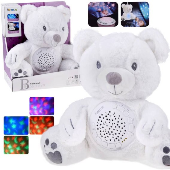 Projektor pluszowy biały miś lampka kołysanka dla malucha ZA5289