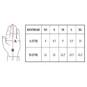 Rękawice dostępne są w rozmiarach XS, S, M, L, XL Poniżej tabela , która ułatwi Państwu dobór odpowiedniego rozmiaru