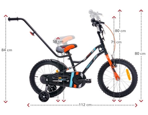 Rower 16 cali Tiger Bike z pchaczem - czarny & pomarańczowy & turkusowy
