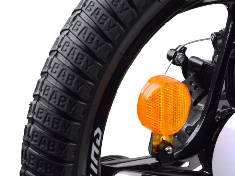 Rowerek renomowanej firmy Royal Baby Space Shuttle 16" to pierwszy rower wysokiej jakości dla amatora dwóch kółek, idealnie nadaje się dla prawdziwego podwórkowego kierowcy. Magnezowa, lekka rama o zakrzywionej powierzchni i gładkich liniach. Regulowana kierownica profesjonalnie wyprofilowana z bezpiecznymi gumowymi manetkami, z zamkniętą osłoną regulacji, dzwonkiem. Komfortowe, siodełko, 16 calowe koła wysokiej jakości opona, podwójnie bezpieczny układ hamulcowy z podwójnymi hamulcami tarczowymi zapewnią komfortową i stabilną jazdę. Boczne kółka zapewniające na początku utrzymanie równowagi, aby dziecko szybciej nauczyło się samodzielnej jazdy. Pełna osłona łańcucha chroniąca przed zranieniem i pobrudzeniem. Składany podnóżek dzięki, któremu dziecko bezpiecznie oprze rowerek po zakończonej jeździe. Dobrej jakości komponenty nie sprawiające problemów w użytkowaniu. Kolorystyka i grafika znajdująca uznanie w oczach właściciela i kolegów z podwórka. Rowerek ten jest świetnie dopracowany, odległości między kierownicą, siodełkiem a pedałami są proporcjonalnie zachowane co zapewnia płynną i wygodną jazdę.