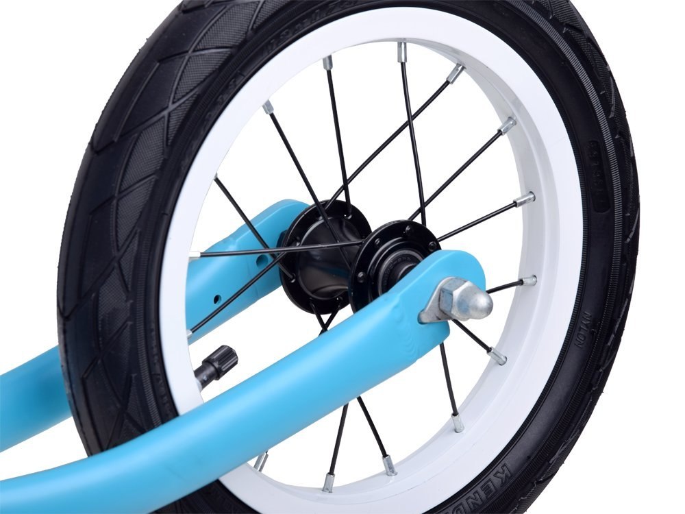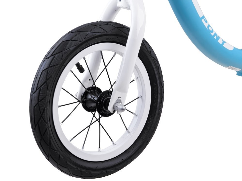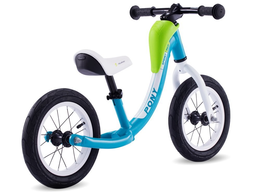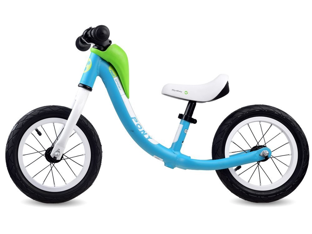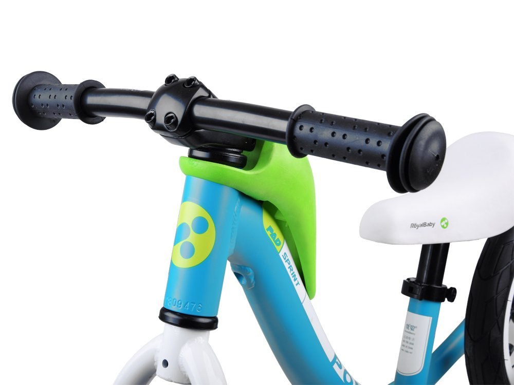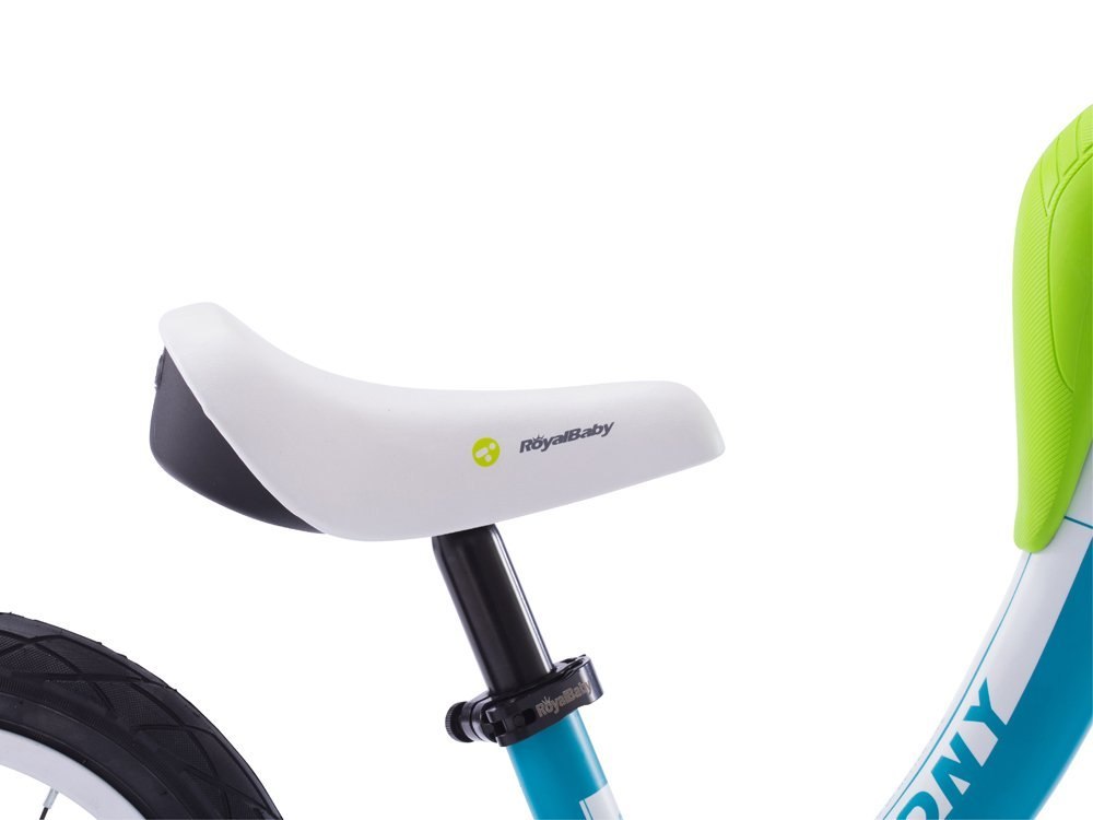 Rowerek biegowy PONY SPRINT pompowane koła 12cal RoyalBaby to lekki wygodny jeździk w kolorze niebieskim. Idealnie sprawdzi się dla dzieci już od 3 roku życia. Rowerek biegowy wprawiany jest w ruch poprzez odpychanie się dziecka nóżkami. W trakcie zabawy dziecko będzie ćwiczyło swój zmysł równowagi i ogólną koordynację ruchową, umiejętności tak niezbędne do późniejszej jazdy na rowerze z pedałkami. Dzięki regulowanemu siodełku rowerek będzie rósł razem z naszym małym rowerzystą. Rama rowerka została wykonana z aluminium oprócz przednich widełek. Na ramie rowerka umieszczona została gumowa osłona chroniąca przed ewentualnym uderzeniem. Jego lekka ALUMINOWA konstrukcja zapewni maluchowi bezpieczne manewrowanie podczas jazdy. RoyalBaby to marka rowerów przeznaczona dla dzieci. Produkty tej marki charakteryzują się wysoką jakością wykonania, atrakcyjnym wyglądem oraz innowacyjnością. RoyalBaby gwarantuje bezpieczną i przyjemną jazdę każdemu dziecku. Firma RoyalBaby działa także z myślą o rodzicach, w siodełku został umieszczony schowek w którym zamontowano pasek dzięki któremu po skończonym spacerze rowerkiem rodzic z łatwością będzie mógł przenieść pojazd w dowolne miejsce.