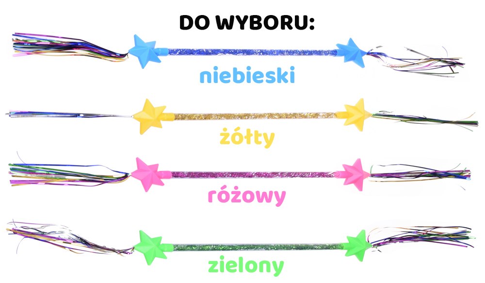 - Kolorowe wstążki: Dołączone do różdżki wstążki są dostępne w różnych kolorach, co zapewnia dodatkowy efekt wizualny.