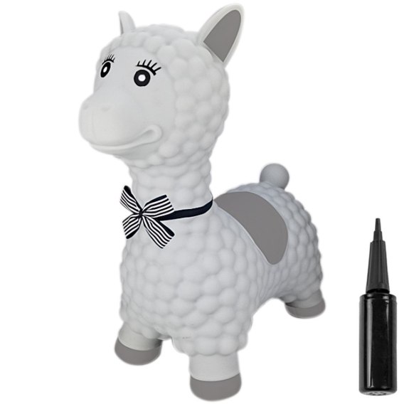 Skoczek gumowy dla dzieci ALPAKA 55cm szary z muszką do skakania z pompką
