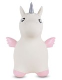 • Skoczek gumowy dla dzieci JEDNOROŻEC 55 cm biały różowy ze skrzydełkami do skakania z pompką