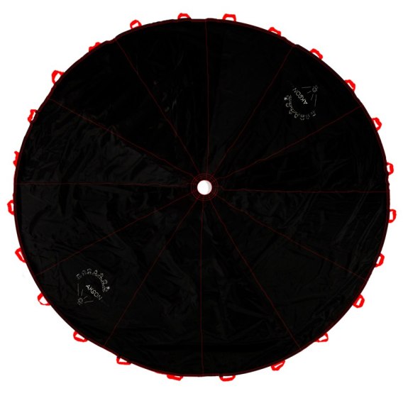 Spadochron animacyjny Akson to płachta animacyjna o wymiarach 3m średnicy w kolorze CZARNYM. Wykonany jest z materiału o mniejszej wytrzymałości i większej przezroczystości niż profesjonalna chusta animacyjna Akson. Materiał, z którego wykonane są spadochrony animacyjne jest lżejszy i błyszczący w świetle.