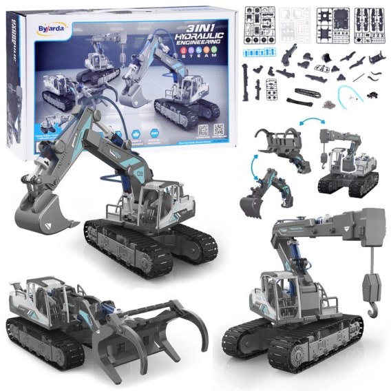 Zestaw 3w1 zbuduj pojazdy budowlane z hydraulicznym zasilaniem, to propozycja dla dzieci już od 8 roku życia. Niezwykły zestaw konstrukcyjny 3w1, stworzony specjalnie dla młodych entuzjastów mechaniki.