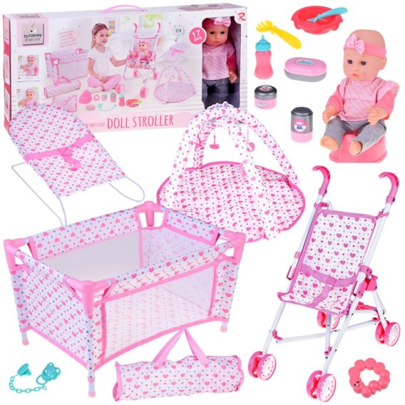 Zestaw dla opiekunki lalka, łóżeczko, leżaczek, wózek, mata dla niemowląt, akcesoria dla lalki bobasa